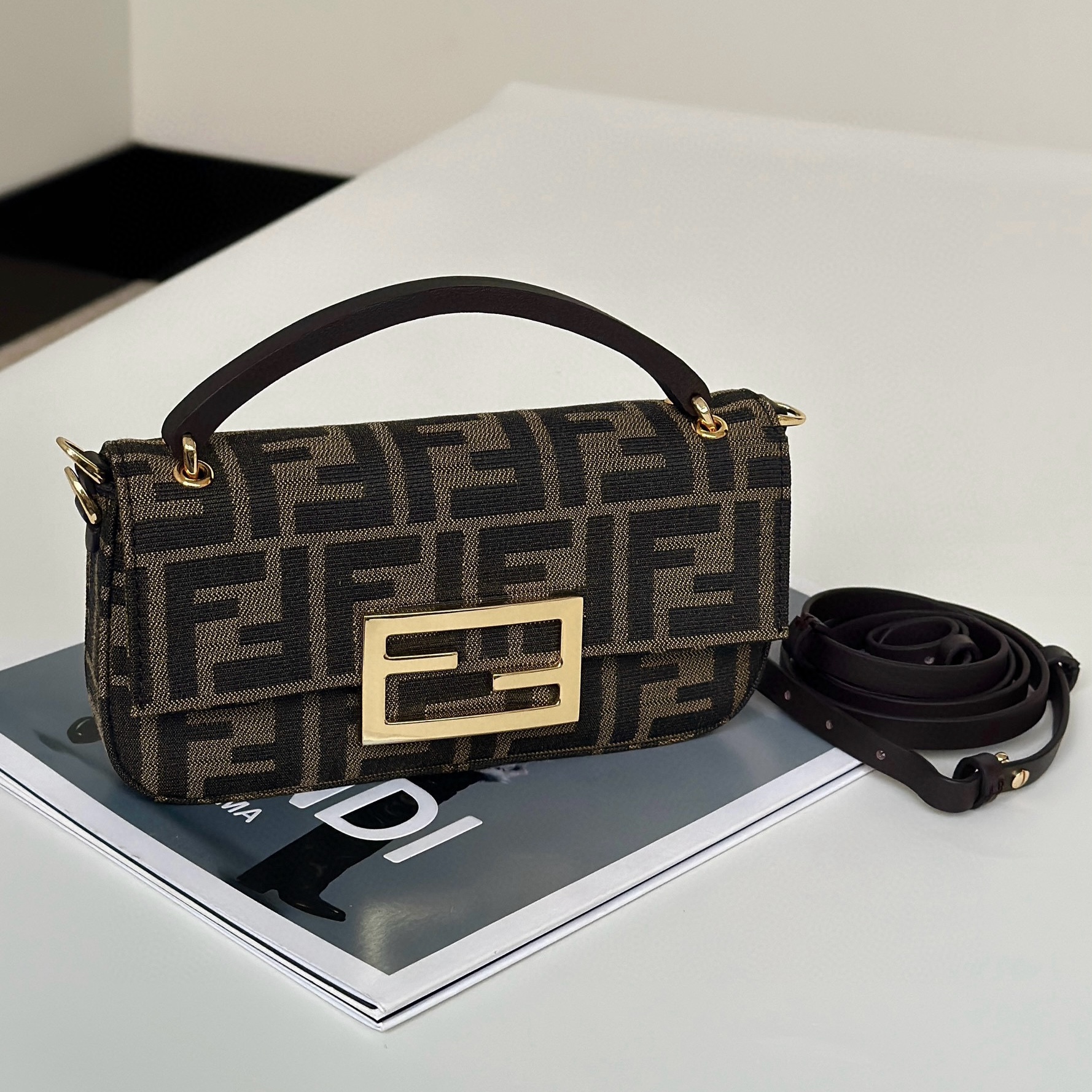 FENDI芬迪包包是輕奢還是奢侈品 Peekaboo迷你手袋 棕色麂皮Selleria手袋