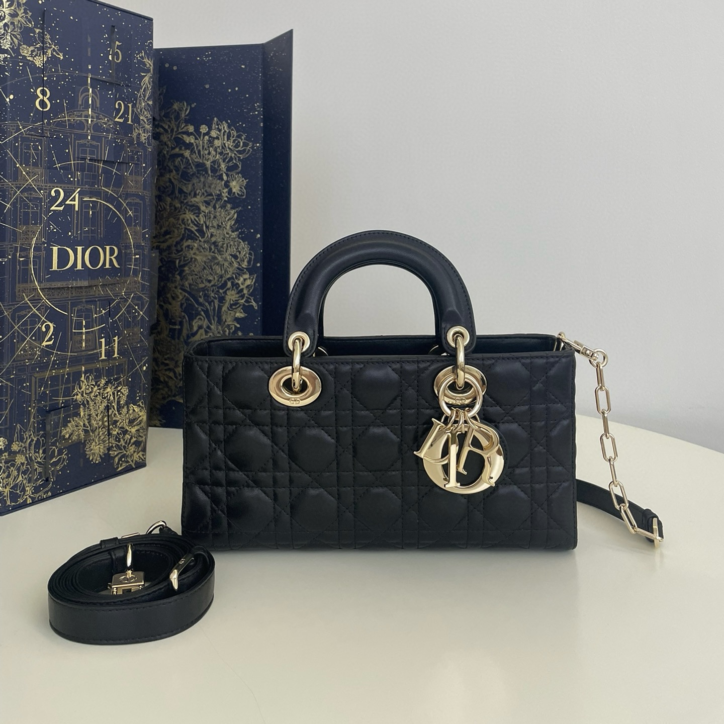 DIOR迪奧包包中文官方代購入口小號 Lady Dior 手袋 黑色漆皮牛皮革