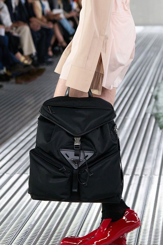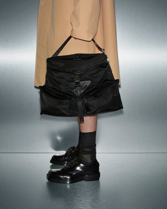 新款多功能包袋上可以看到品牌標志性三角符號的各種變體,巧妙隱藏在包蓋輪廓、金屬徽標、拉鏈口袋等諸多細節之中,推出尼龍和皮革等材質選擇以及不同色彩和尺寸規格,大容量、自重輕的優勢對日常出行也格外友好。