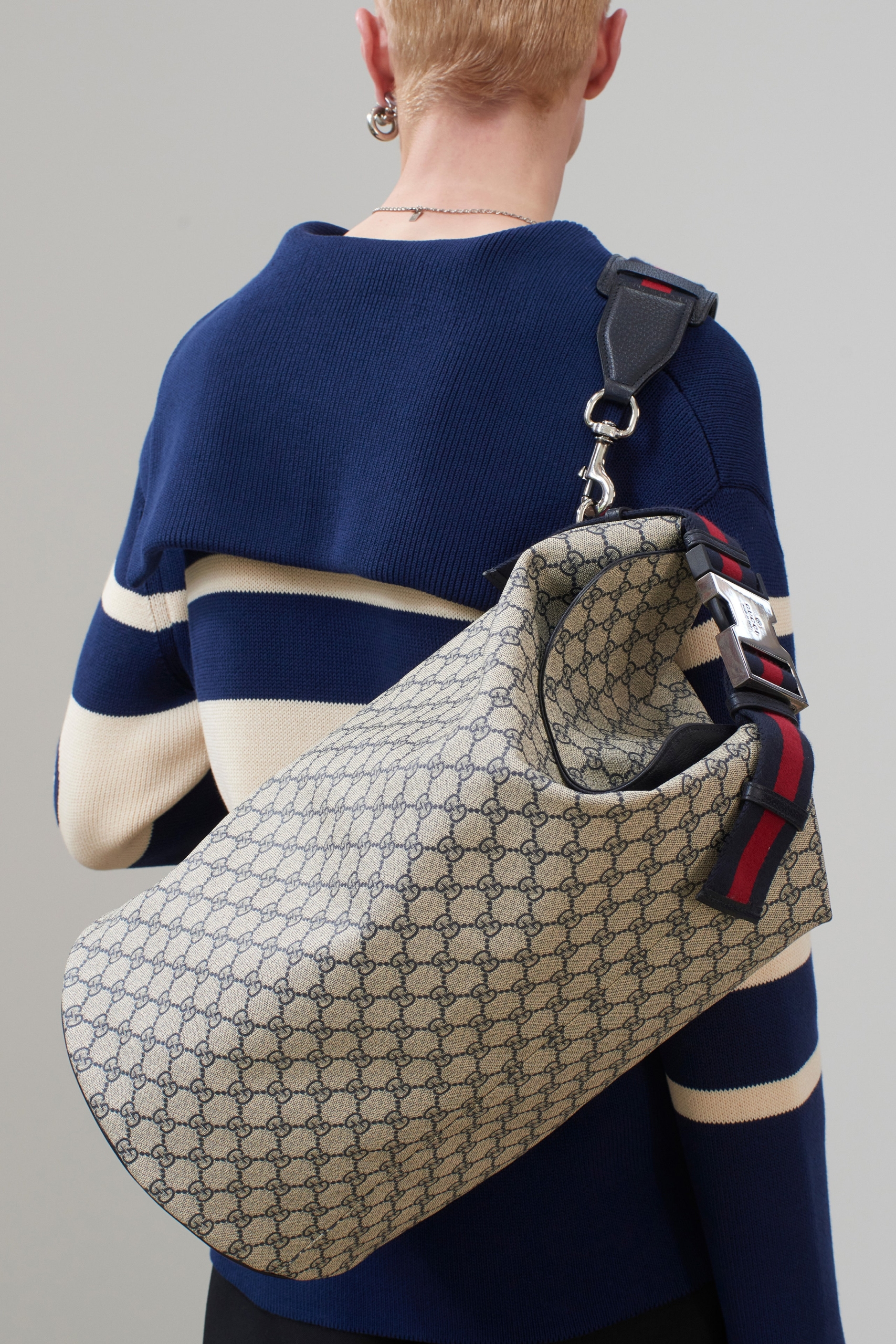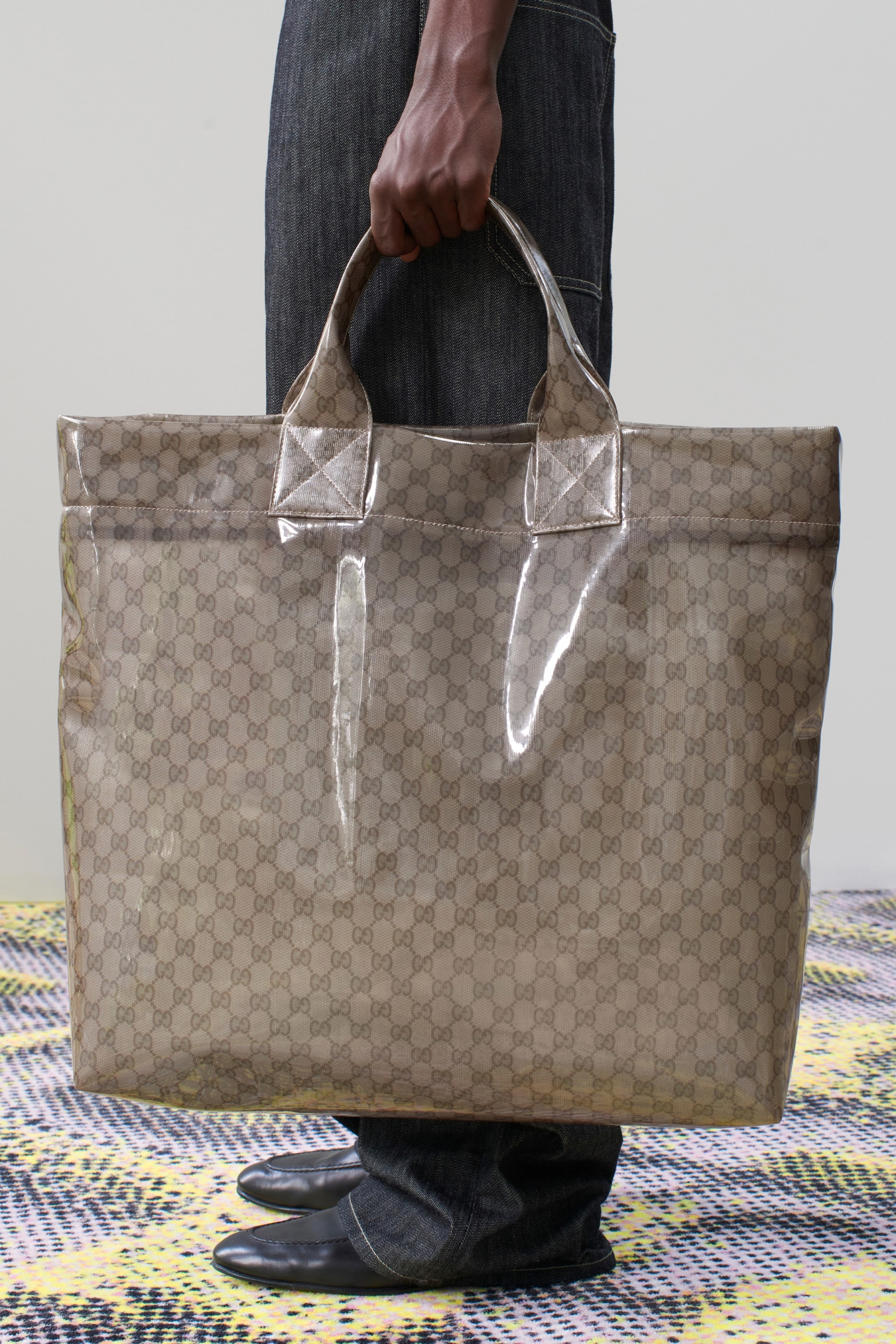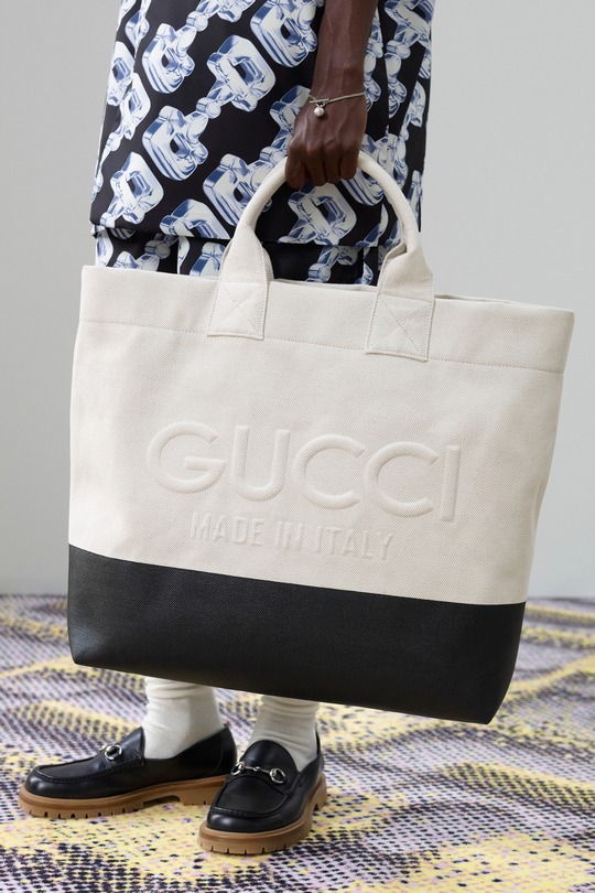 Gucci 在米蘭時裝周期間發布2026春夏男士系列 Lookbook,本季作品從品牌典藏檔案中汲取靈感,共呈現20組造型。包包方面最大亮點是以 oversized 超大規格亮相——大號托特包、多功能水桶包、放大馬銜扣元素等,從年輕視角重新诠釋經典設計。