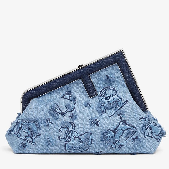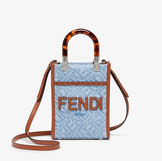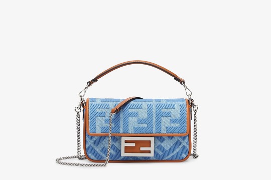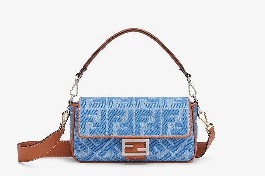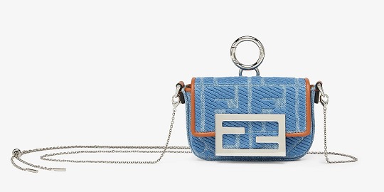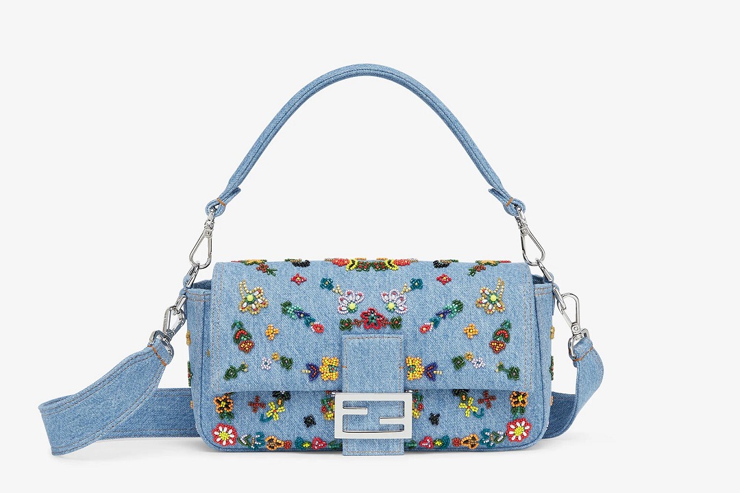 色調清爽的牛仔布爲夏季包包注入惬意氛圍,Baguette 中號手袋複刻自2020春夏經典款式,在淺藍色牛仔布上刺繡拼色串珠組成的花卉,充滿田園趣味。基礎款 Baguette 法棍包、Mon Tresor 水桶包、Sunshine 手提袋、Fendigraphy 新月包等包款在淺藍色牛仔布上全幅飾有浮凸 FF 提花或 FENDI Mirror 壓印圖案,打造夏日街頭感穿搭。