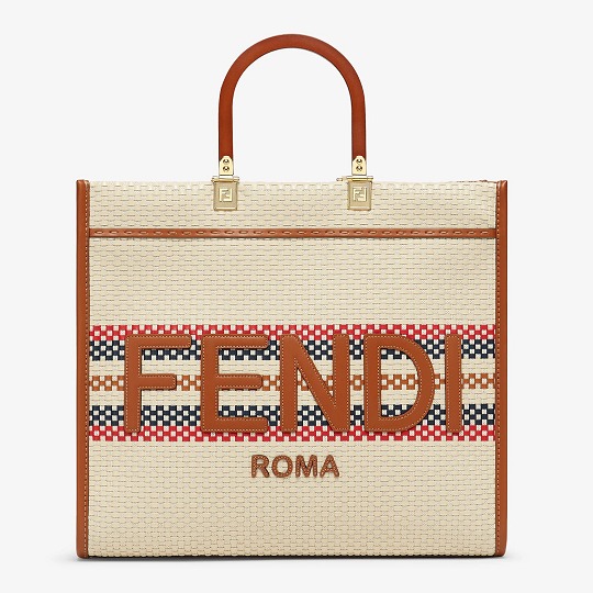 輕盈透氣的拉菲草編織包包把度假氛圍拉滿,推出小號海灘包、超大號肩背包、By The Way 波士頓包、Sunshine 手提袋等包款,搭配充滿辨識度的 FENDI ROMA 徽標和清爽條紋裝飾。