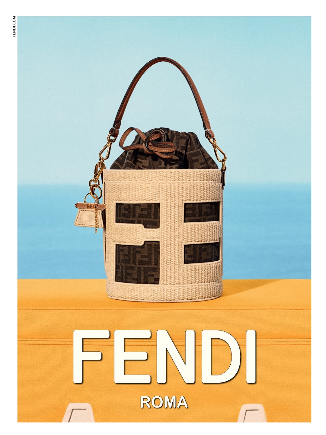 Mon Tresor 水桶包采用 FF 提花草編布料搭配編織提手,或在棕色皮革、FF 老花帆布包款底部點綴稻草編織裝飾,在細節中展現夏日情緒,同系列還有 Fendigraphy 新月包和超袖珍吊飾包等單品,爲夏季穿搭增添點睛之筆。