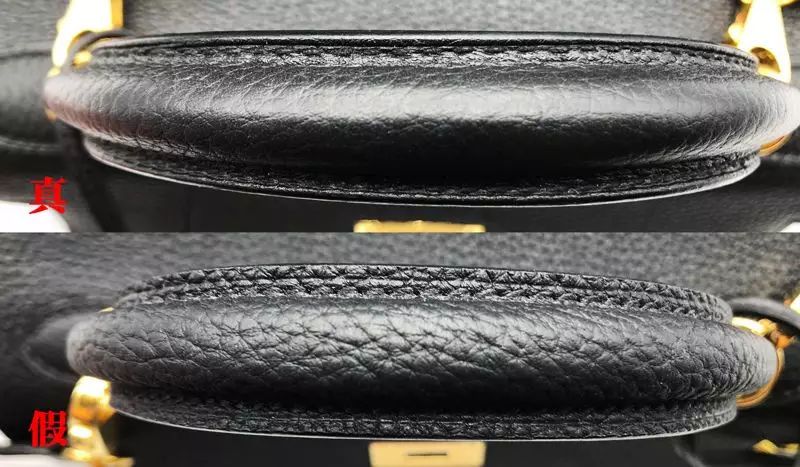 以小助理多期總結下來的經驗,很多假包其實做的都很真,但是往往在細節處出問題。比如這只假包的包邊,真包的油邊處理得比較好,沒有明顯的擠壓凸起與線頭,而假包的包邊處理得就有些不盡人意,不僅有些不自然的凸起,線頭也比較雜亂。