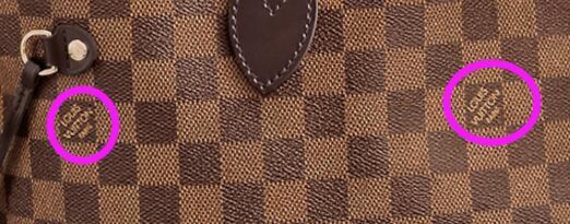 Logo在LV Damier(GM)款上的位置是在從頂部起的第6個正方形中。包包側面總共只有8個徽標,底部只有壹個。在MM和PM這兩個尺寸中,logo分別位于頂部的第5個和第2個正方形處。每十分之壹平方會重複有壹個logo。請記住,logo永遠不會被手柄或接縫分開或部分隱藏。