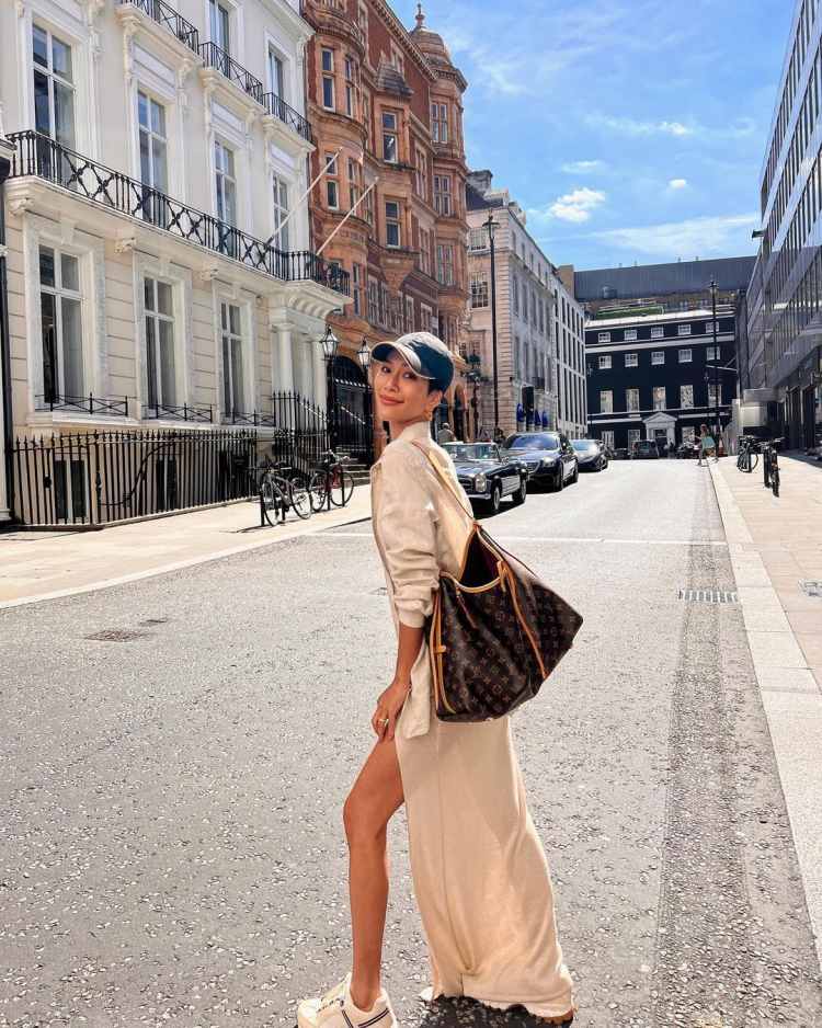 這款包即將上市!壹直以來就走在趨勢前端的時尚 icon 莫莉,在日前旅行時變搶先在倫敦曬出「CarryAll」的穿搭照,運用鈎織面料的開衩長洋裝,搭配上同色系的襯衫式罩衫,再以 Louis Vuitton 的 「CarryAll」做爲搭配焦點,隨性咨意的風格簡簡單單就能抓住大家的目光。