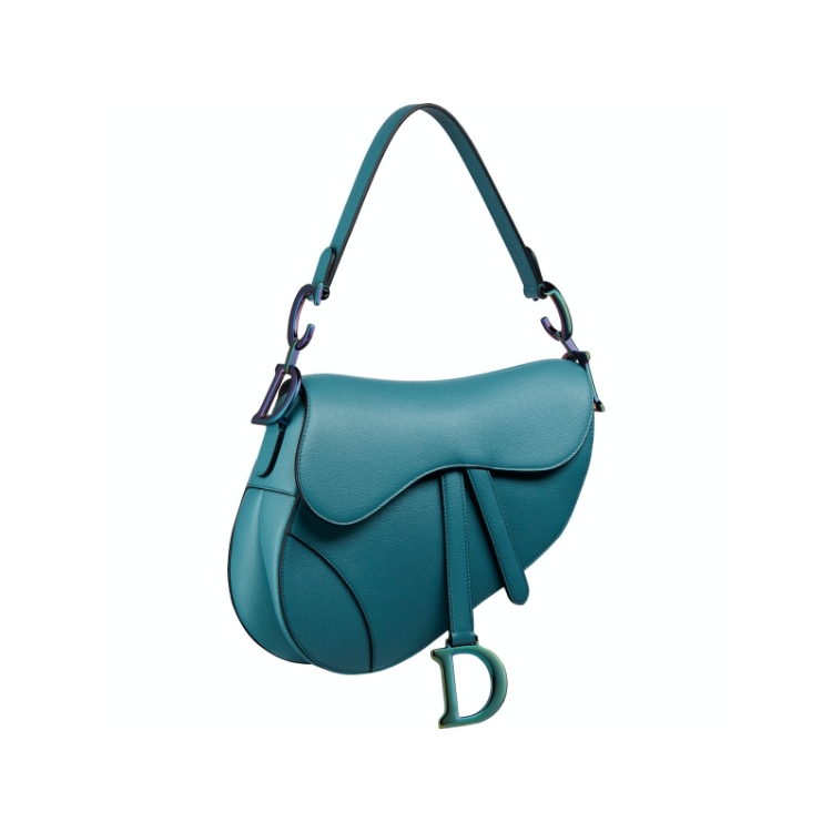 經典到能送進博物館的 Saddle 馬鞍包,這次以蔚藍色的新色登場,在細節處品牌以特殊工法呈現的背帶扣環,讓金屬面料閃耀著吸睛的霓光色。