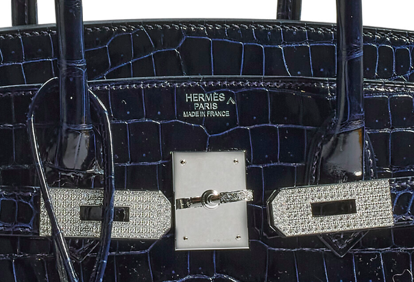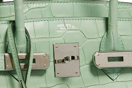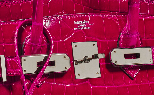 愛馬仕的鱷魚皮包裡最值錢的絕非灣鱷皮莫屬,市場上的野生灣鱷十分少見,其鱗片小而密,間隙很深,且每個鱗片上都有壹個小氣孔。那要如何分辨哪個才是灣鱷皮做的包包呢?仔細看的話,在愛馬仕燙印Logo旁會發現有壹個倒V符號「^」,只要看到這個符號就代表這個鱷魚皮包使用的是最高級的灣鱷皮。