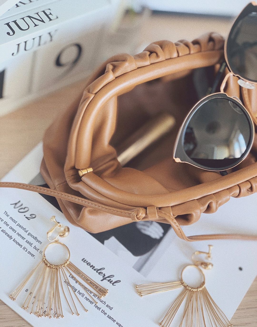 小号的BV云朵包是有肩带的哦,这个就更方便了,肩带的长度是可以根据自身情况自由调节的,调节方式也超简单,直接打个结就行了,想要多长就多长,所以即可以气质的手拿又可以方便轻松的斜跨在身上