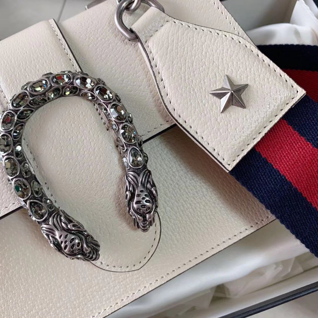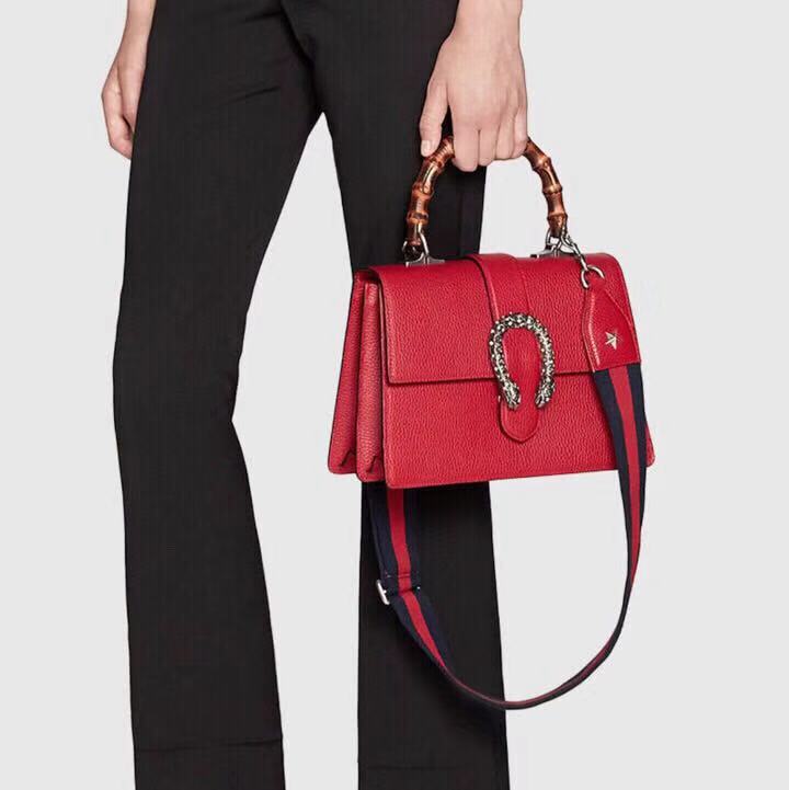 众所周知,竹节包和酒神包都是Gucci的热门款;然而这只古驰Dionysus 酒神竹节包同时具备了两种元素!竹节手柄,风琴包型,这款包简直绝了!再加上施华洛世奇水晶,适合各种风格,各种年龄;肩带卸掉贵妇风,装上肩带青春时尚。