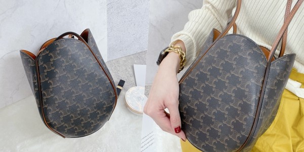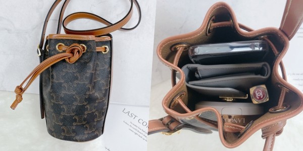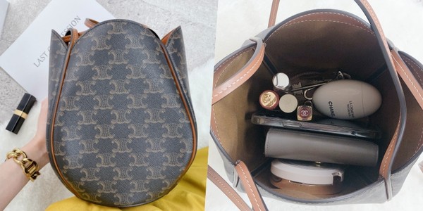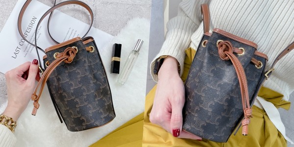 CELINE新款TRIOMPHE CANVAS水桶包,以更为小巧细致的轮廓重新演绎,迷你包型让个子娇小的东方女生使用起来轻盈细腻,成为妆点造型不可或缺的梦幻逸品,包身虽然小巧却十分能装,甚至包款才刚到柜就询问度超高!
