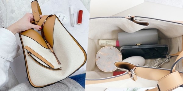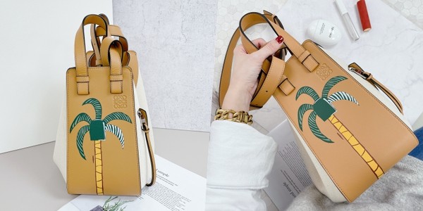8、LOEWE小号帆布拼小牛皮 La Palme Hammock 手提包