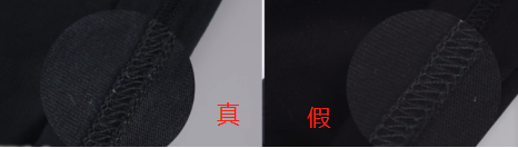 正品领口竖条纹路较深,清晰明了;仿品领口竖条纹路较浅,挤在一起。