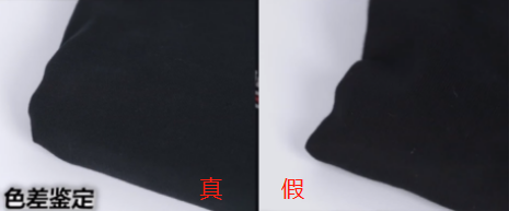正品布料颜色偏冷灰;仿品布料颜色暖黑。