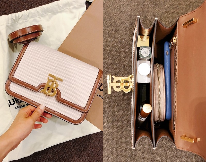 人生第一款BURBERRY包款绝对要锁定经典TB包,柜上最热门的款式就是这个双色调帆布款,正面压缝皮革包,让质感更加硬挺立体,采用品牌代表性的Thomas Burberry花押字锁扣设计,可以肩背、斜背或直接当作手拿包使用!