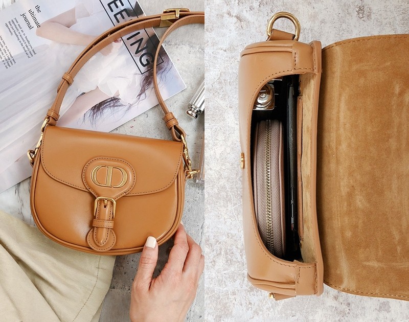 Dior Bobby肩背包提供三种尺寸可选择,本次实测的尺寸为最小号,新月圆弧包型精巧可爱,搭配绒面内里实现舒适奢华触感,可放入短夹、手机及唇膏等小物,满足容量基本需求,但如果还想再多携带其它物品的话,建议可以选择同系列的中号尺寸育!