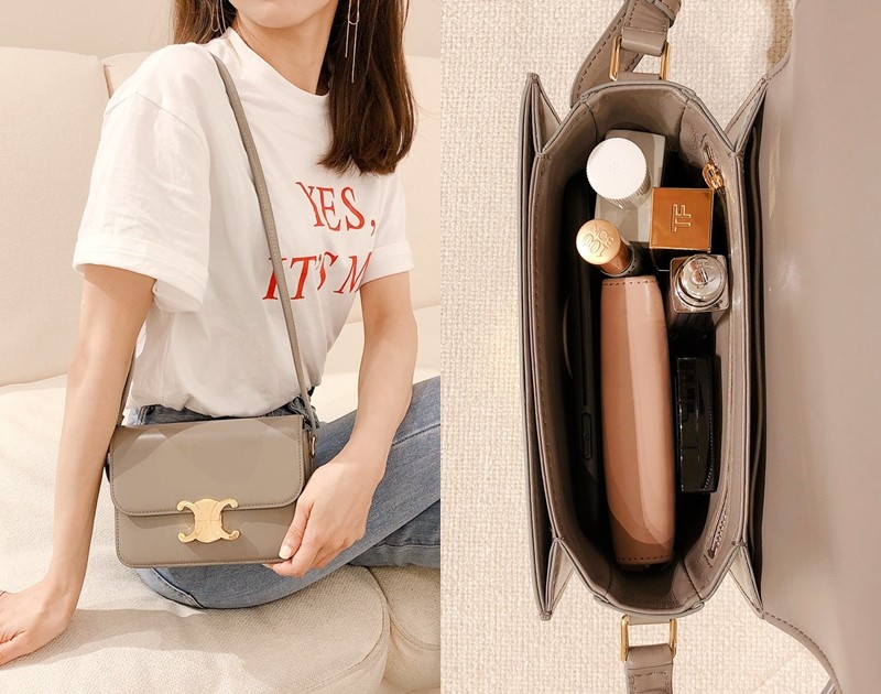 小巧的外观不禁让人担心实用度,但在实际测试后,除了乳液外其他单品都能轻松装入,也因为方形的盒子设计,让包内物品一目了然、拿取时更从容不迫,也让容量大大提升,是一款符合基本日常需求的迷你包喔!
