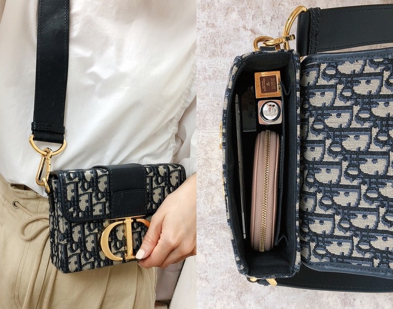紧接着这款是许多女孩心中的梦幻包款,Dior的蒙田小盒子包,除了素色皮革款外,经典蓝色Oblique缇花帆布包款更是询问度超高,搭配CD字母锁扣和可调式可拆卸宽肩背带,优雅又带点个性的风格,成为了年度最受欢迎的迷你包之一!