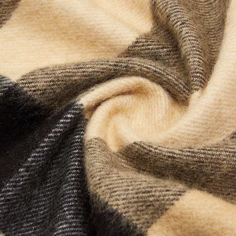 巴宝莉围巾延续了这Burberry品牌的理念,装饰着斜纹格子图案和手工抽丝线还有经典burberry标志,方形棕色的丝绸。这款围巾,格子设计到边角,中间采用大块浅棕色搭配各种色系的外套都体现出独特品位。