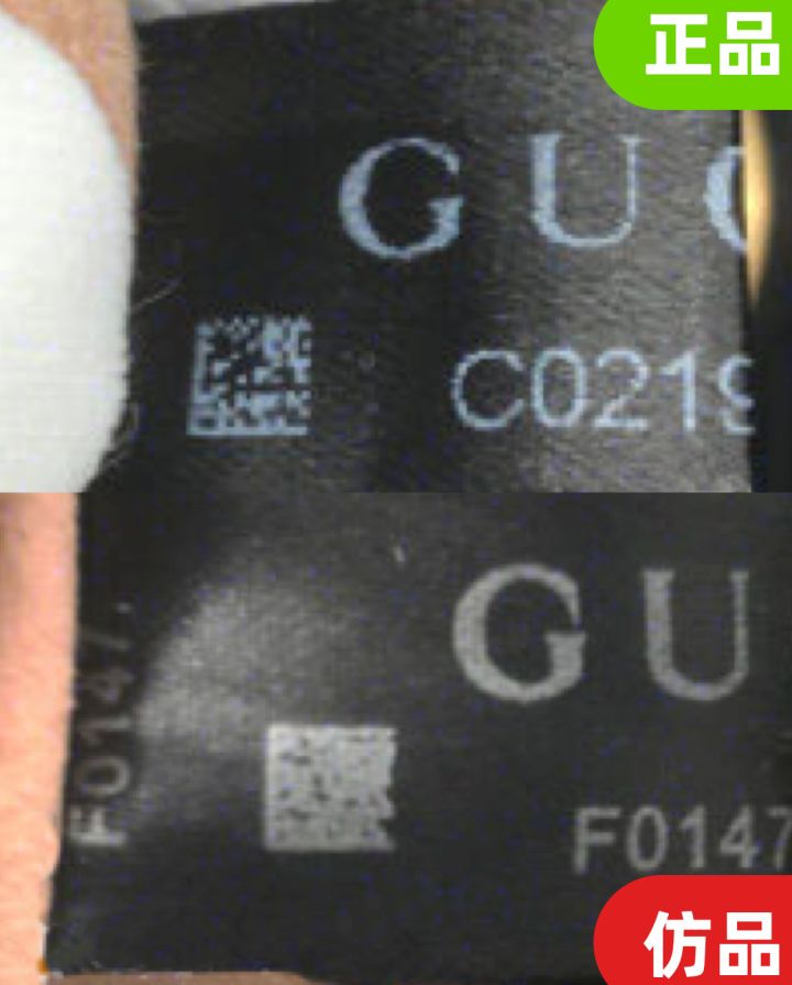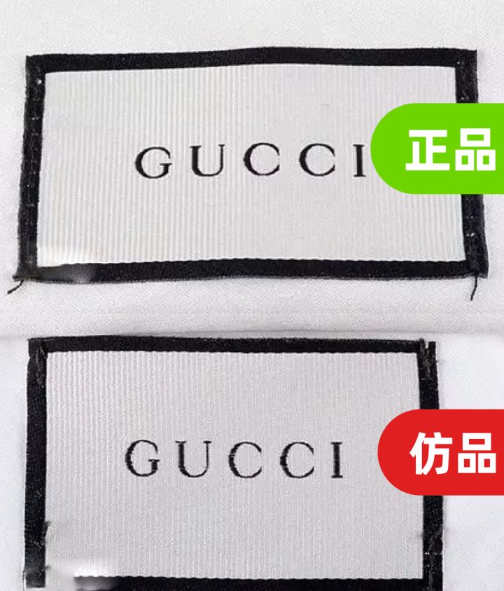 对比GUCCI的LOGO,仿品的G偏肥大,上面的勾较为尖锐,熟悉GUCCI标志的人,一看到下图就知道是仿品的