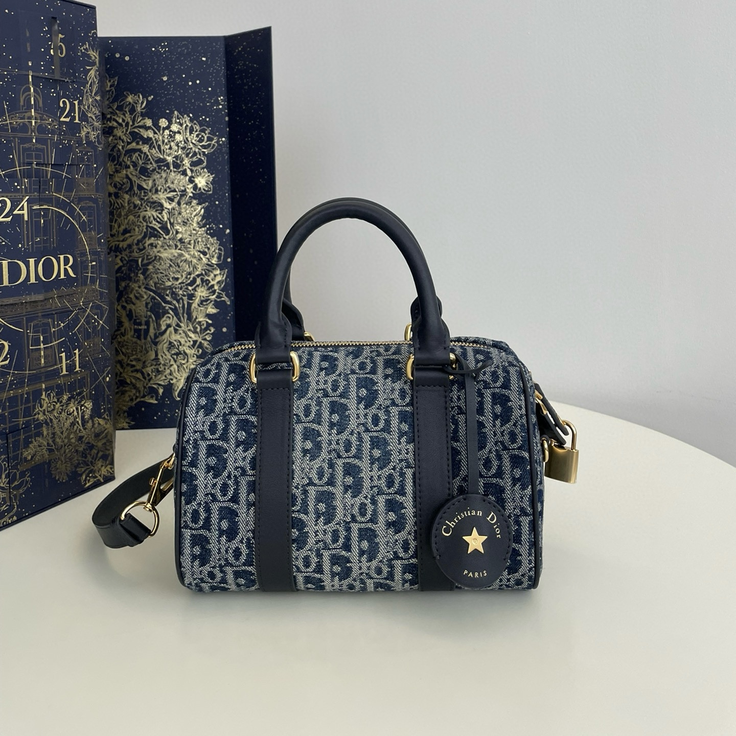 DIOR迪奧包包日本官網最新款式大號 D-Vibe保齡球包藍色 Oblique 印花