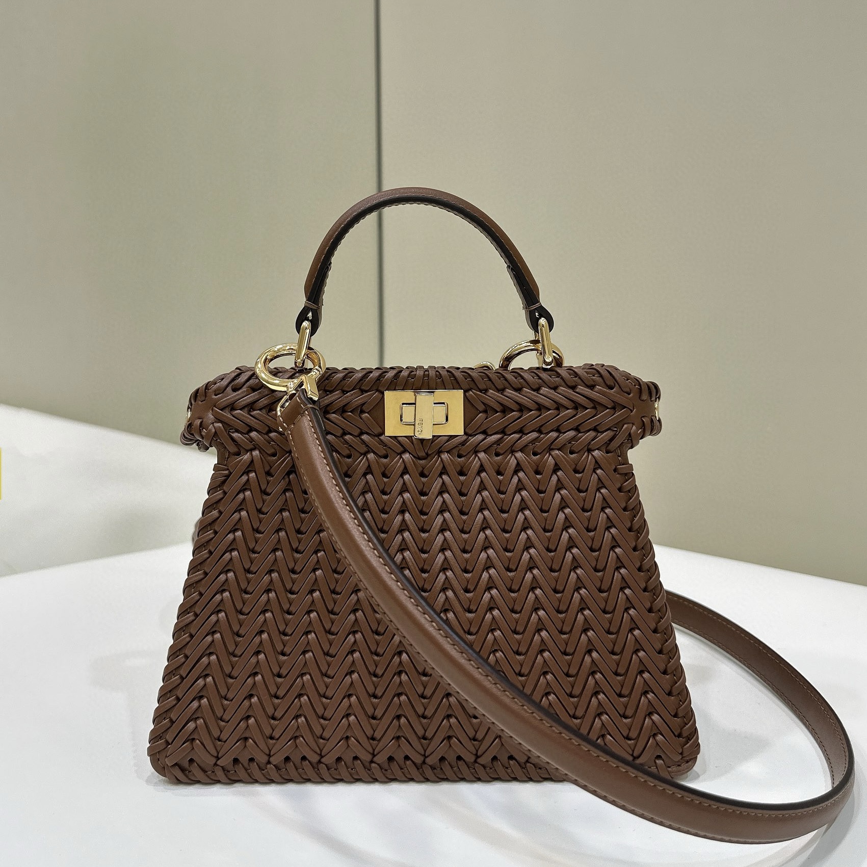 FENDI包包官網新款辮編牛皮革Peekaboo ISeeU Petite肩背包
