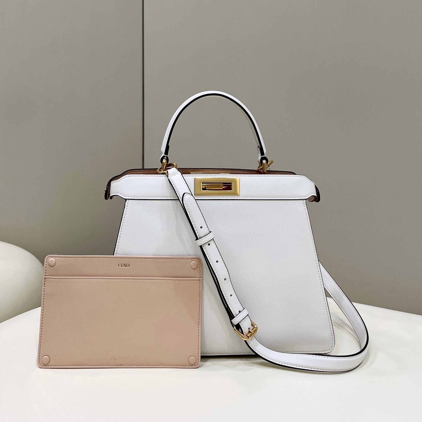 突顯FENDI非凡工藝和創意元素的標誌性Peekaboo ISeeU中號手袋。於2009年推出的Peekaboo手袋是經典手袋的標誌。此名稱靈感源自兒童遊戲「躲貓貓(Peek-a-boo)」,突顯手袋裏裏外外的美感。