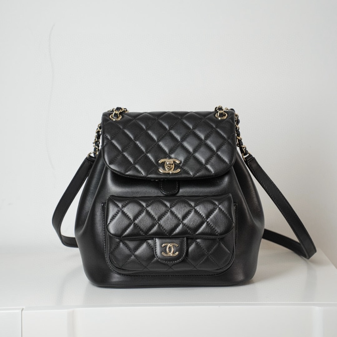 CHANEL包包怎麽分辨真假 24p 新款duma 黑色牛皮革雙肩包