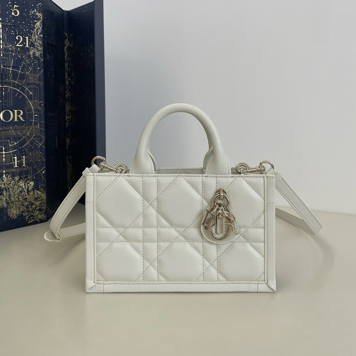 這款 Dior Book Tote 手袋是 Dior 創意總監瑪麗亞·嘉茜婭·蔻麗 (Maria Grazia Chiuri) 的經典原創設計。采用黑色牛皮革精心製作,飾以經典的超大藤格紋緝面線,一個頂部手柄飾有淺金色飾面金屬 D.I.O.R. 吊飾。迷你款式,彰顯 Dior 的精湛工藝,搭配可調節和可拆卸肩帶,可手提、肩背或斜挎。