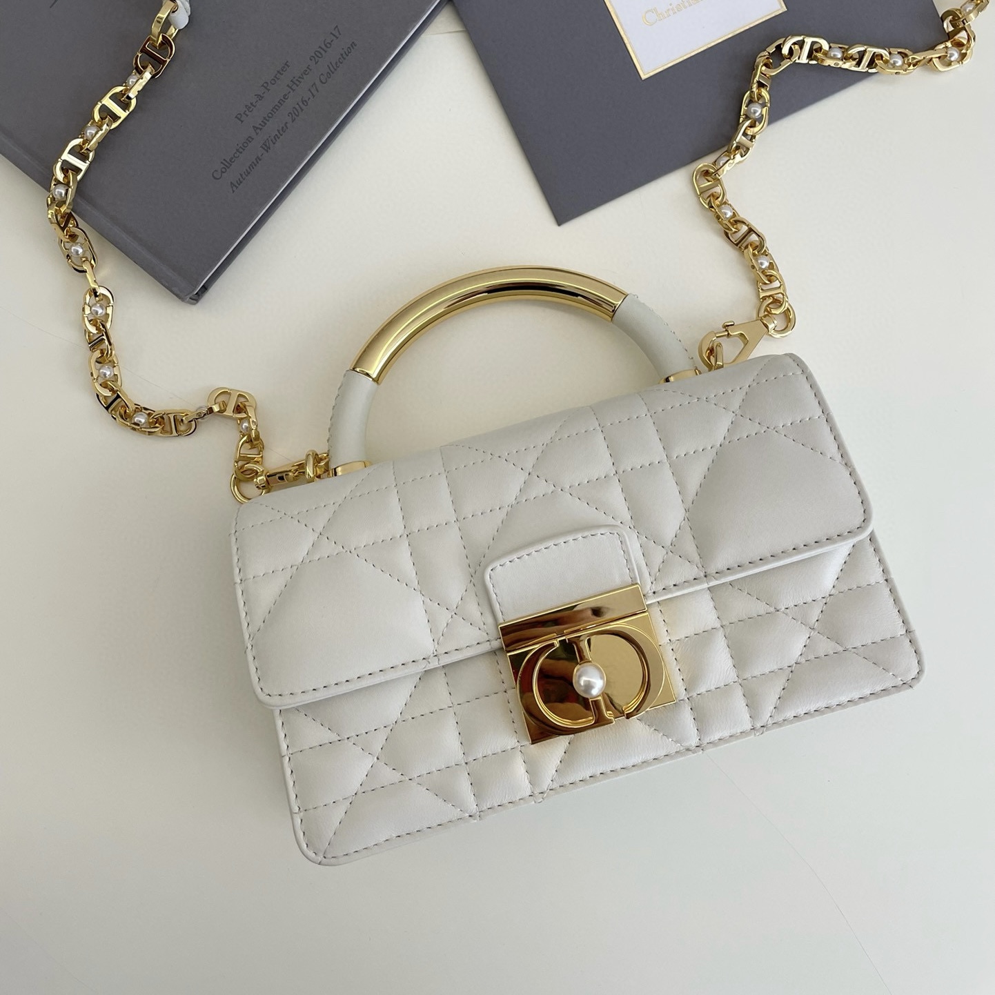 拉鏈開合,搭配鐫刻以 Christian Dior Paris 標誌的掛鎖