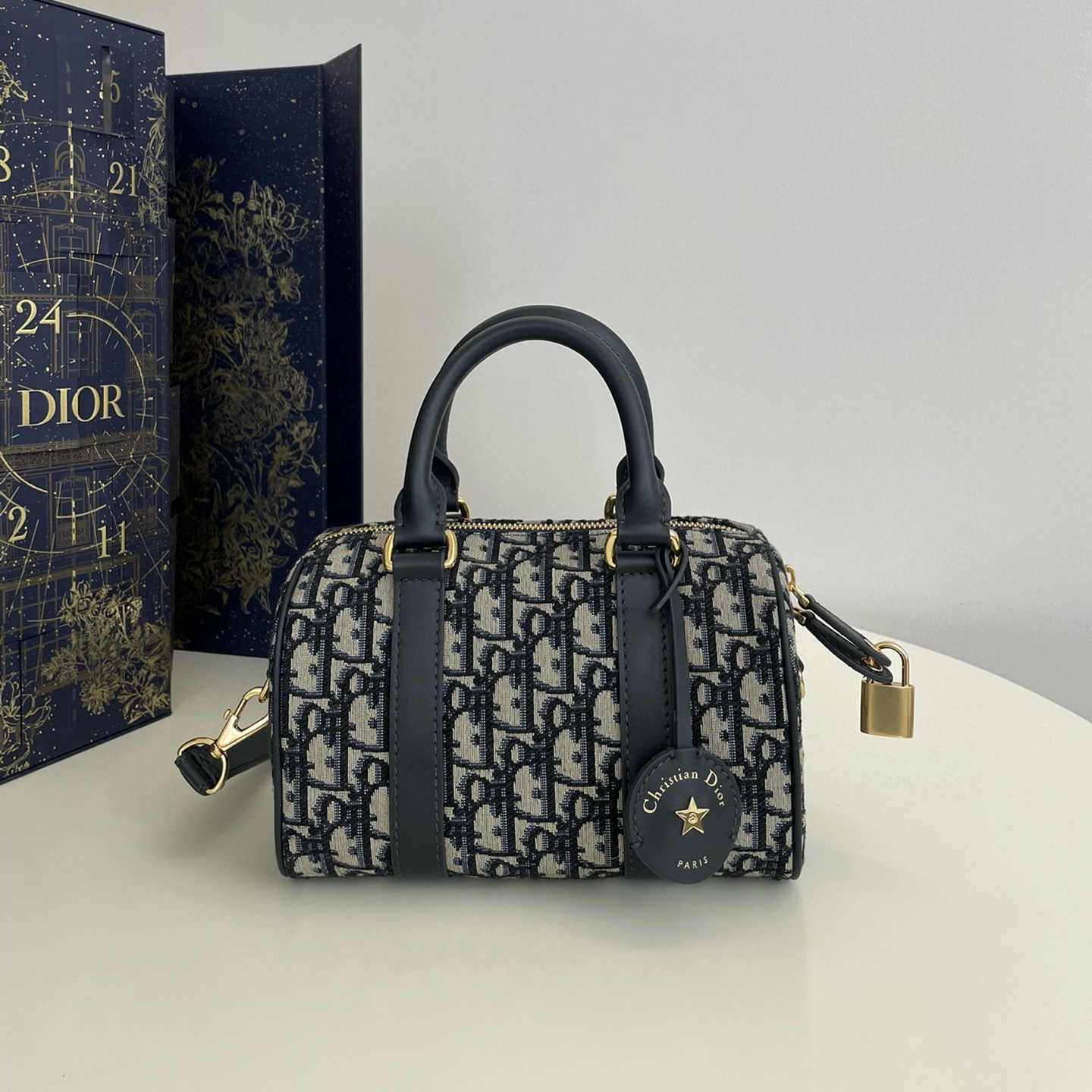 迪奧包包新款官網專櫃Dior Groove 25 手袋藍色 Oblique 印花面料