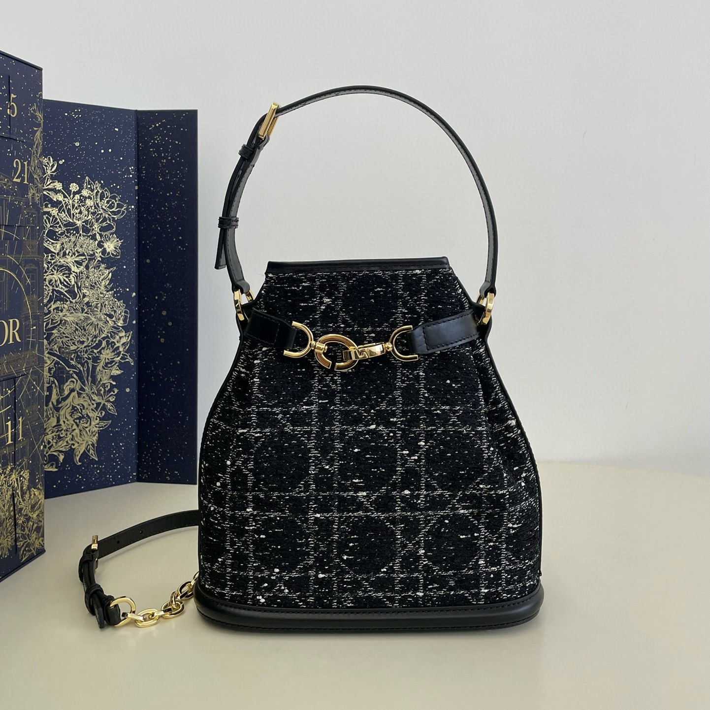 這款 Dior Groove 20 手袋是二零二四冬季成衣系列新品,由瑪麗亞·嘉茜婭·蔻麗 (Maria Grazia Chiuri) 設計,優雅時尚。采用黑色牛皮革精心製作,飾以絎縫效果超大藤格紋圖案,彰顯 Dior 的精湛工藝,皮革鑰匙包飾以 Christian Dior Paris 標誌,並點綴以金色飾面星星,別具一格。隨掛鑰匙可打開拉鏈掛鎖,寬敞的隔層設有一個插袋和一個拉鏈口袋,可收納各種日常用品。搭配皮革頂部手柄和可調節、可拆卸的肩帶,可手提、肩背或斜挎,是打造日常造型的理想手袋。