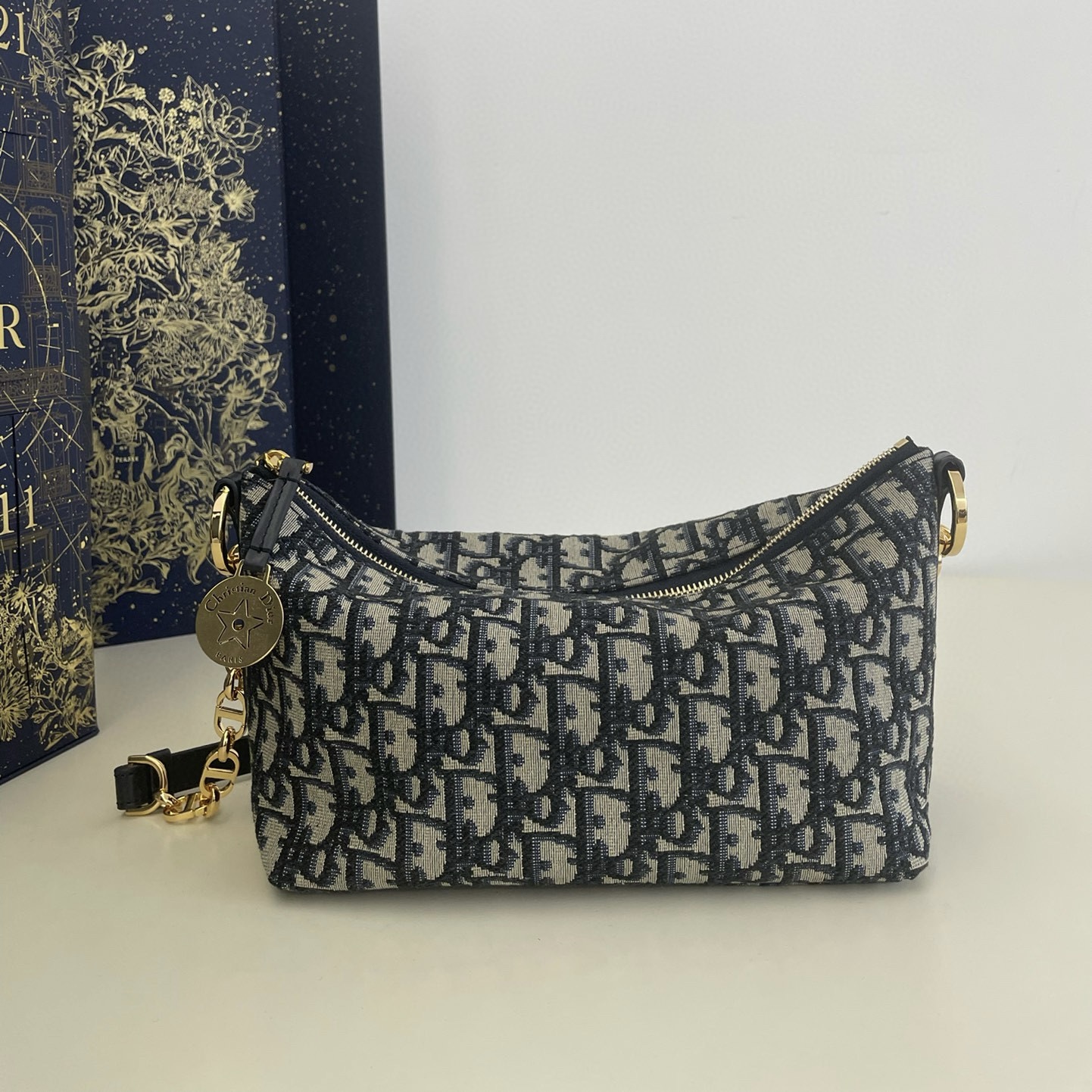 拉鏈開合,搭配鐫刻有 Christian Dior Paris 標誌和星星的圓形飾牌