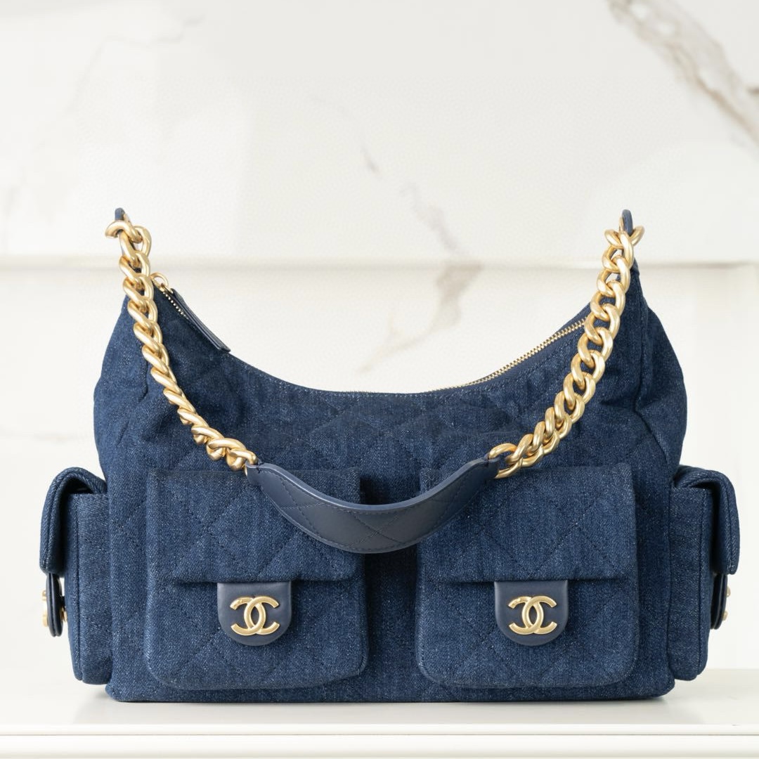 CHANEL香奈兒包包官方網站最新款式價格 22 小號手袋 藍色絎縫丹寧