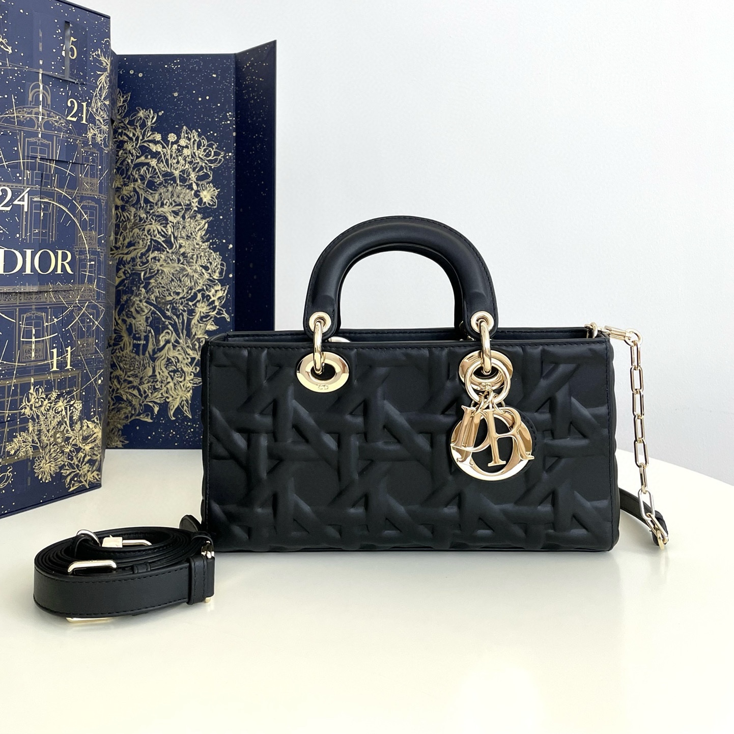 雙開合設計:纖細系帶和 Christian Dior Paris 系帶搭配 CD Lock 扣環D.I.O.R. 吊飾 可拆卸內部小袋可調節皮革手柄尺寸:28.5 x 21.5 x 17 厘米(長 x 高 x 寬)