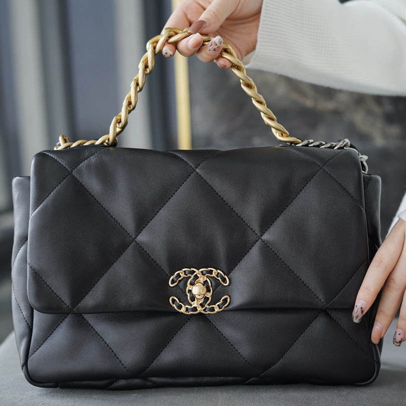 Canada香奈兒女包經典款式官網專櫃 22 手袋 黑色亮面小牛皮