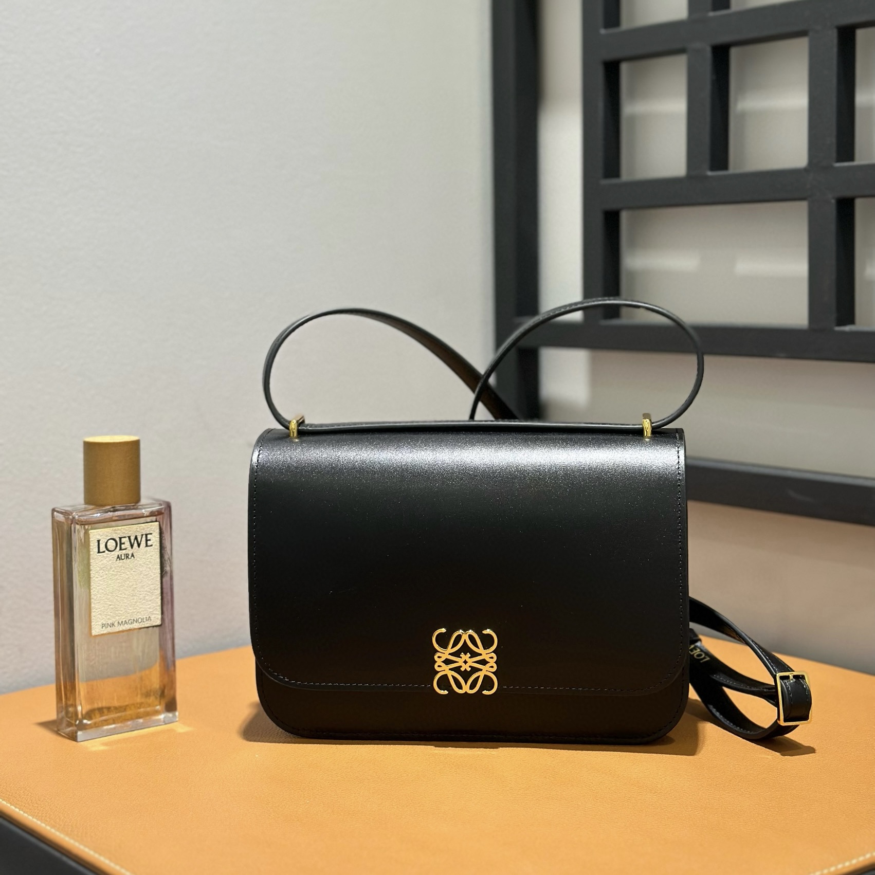 肩帶上飾有金屬壓紋 LOEWE 標誌