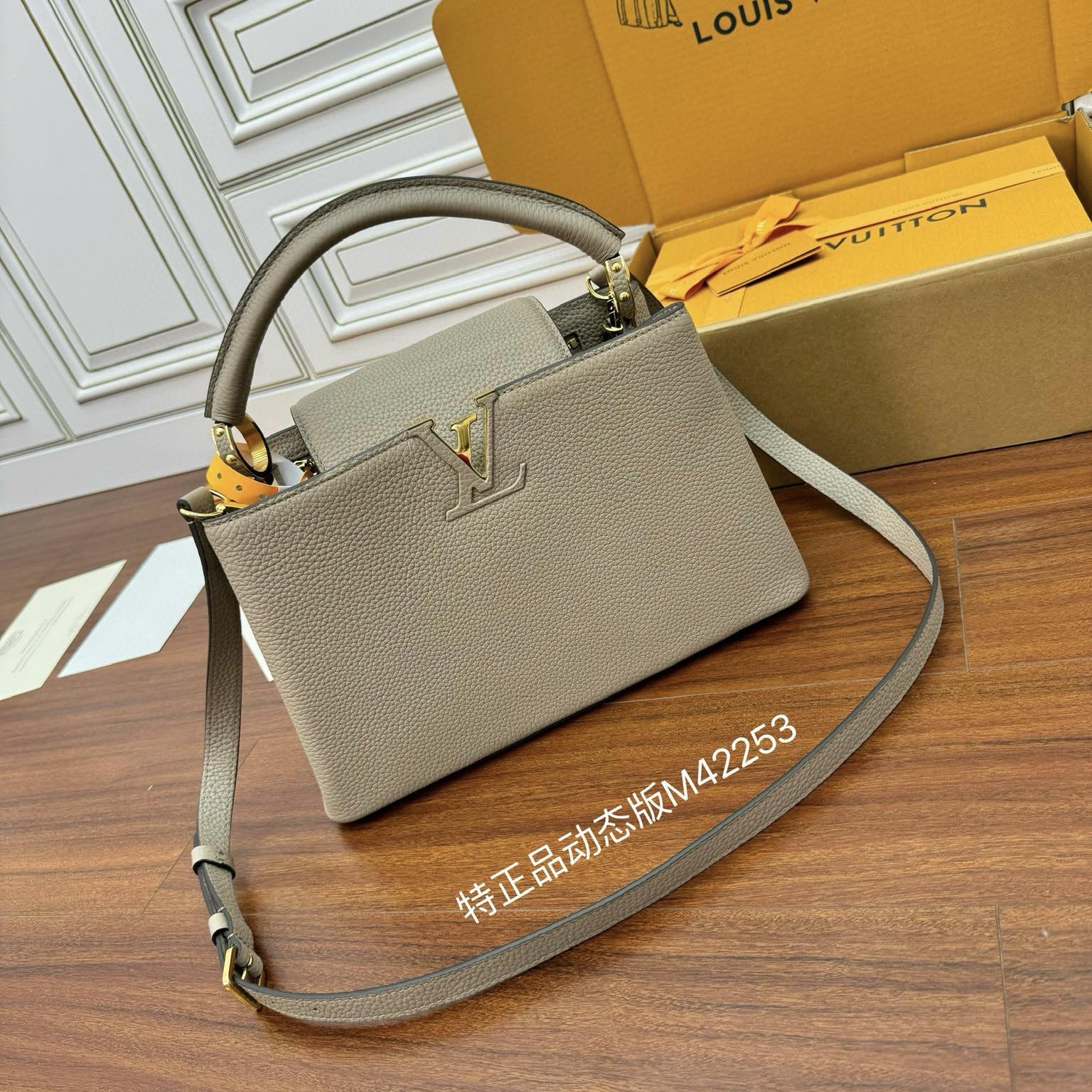 LV路易威登女包 CUIR TAURILLON 黑色M42259 Capucines 中號手袋