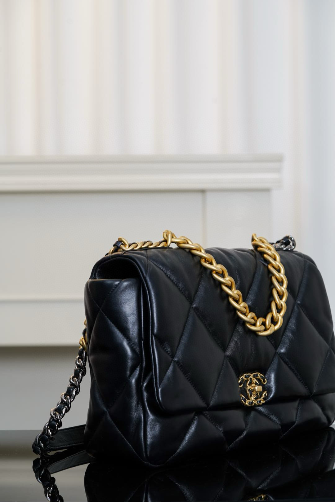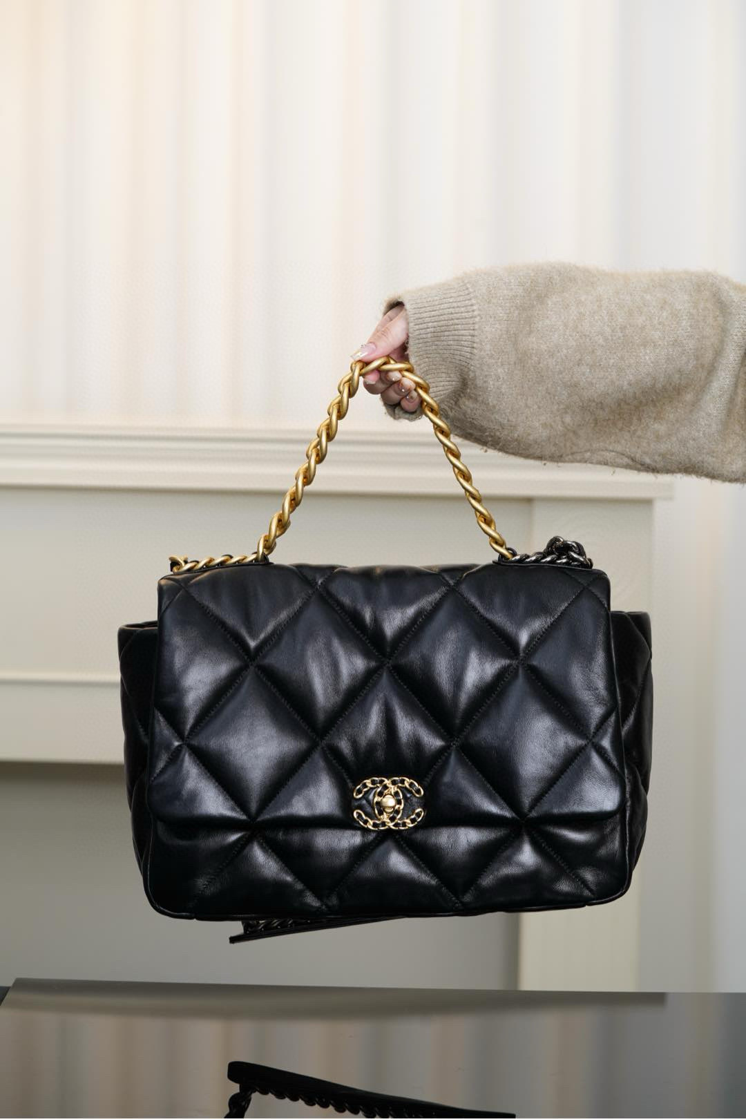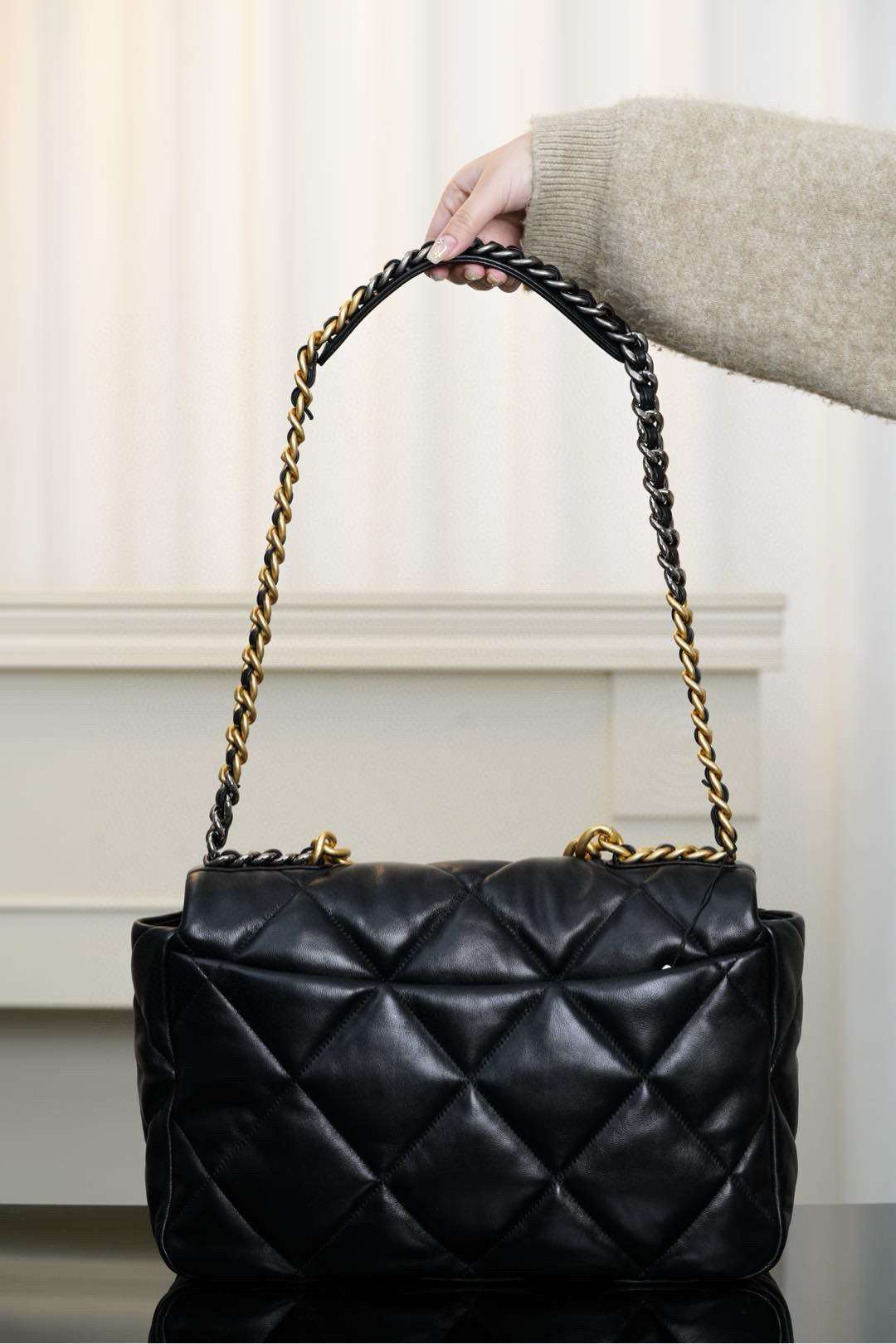 CHANEL女包19繫列 Australia官網專賣店新款Classic Flap 大號黑色羊皮革
