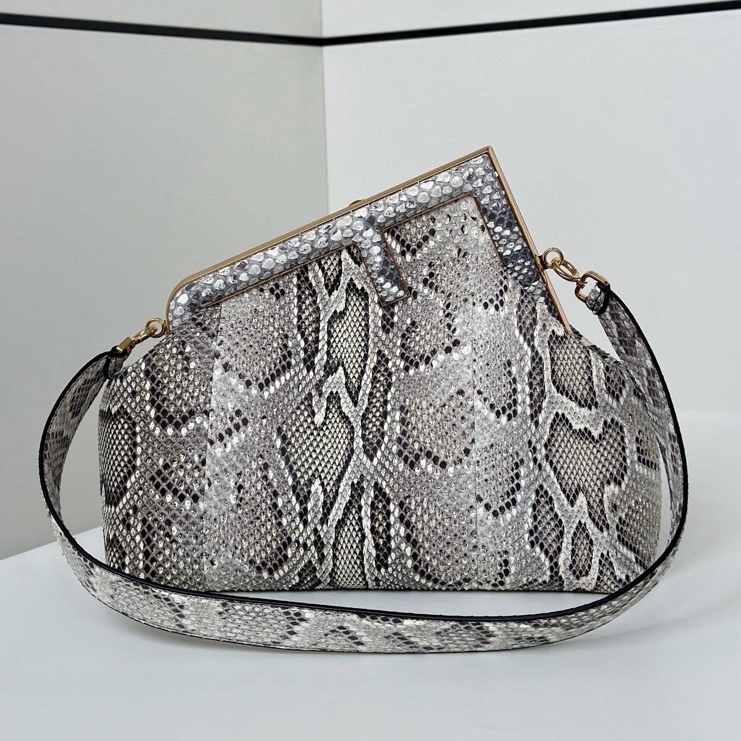FENDI芬迪包包屬於什麽檔次 官網新款 FIRST 大號 蛇皮 黑色肩背包