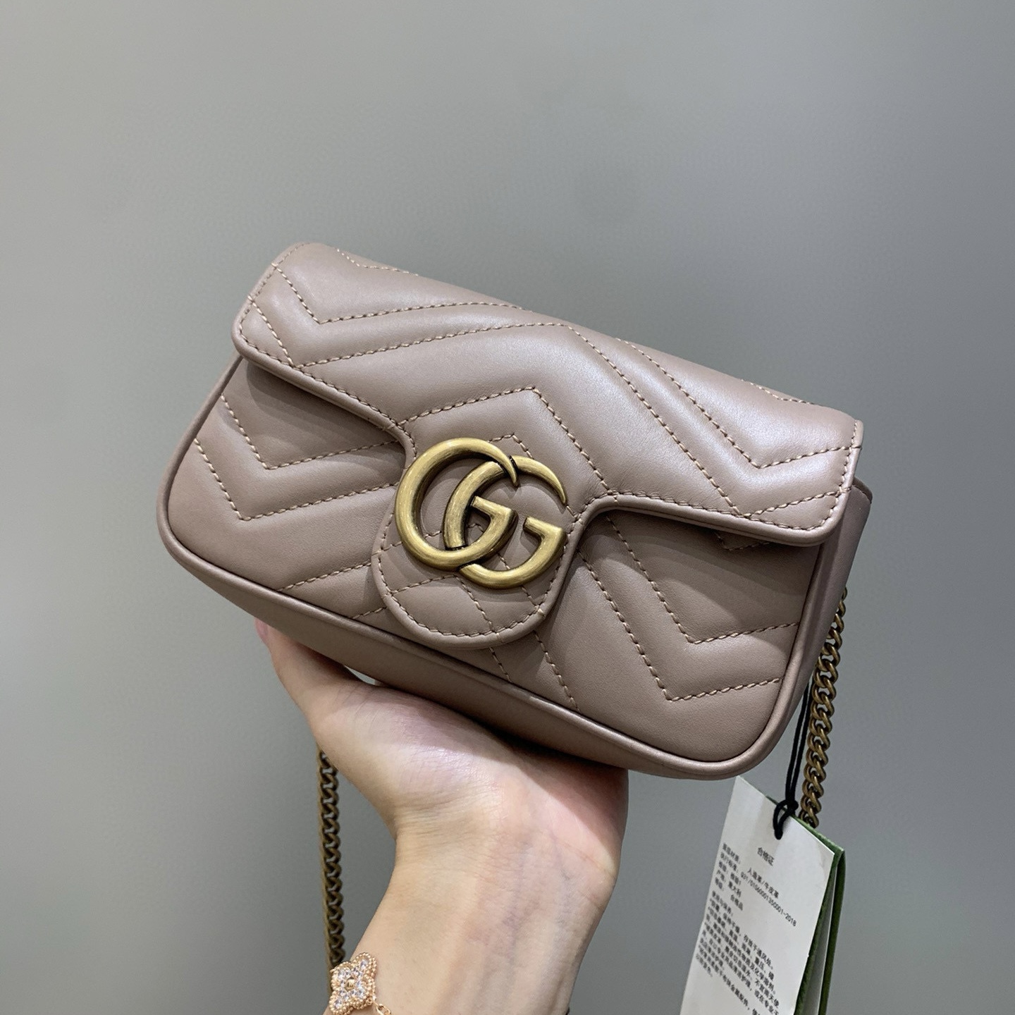 這款GG Marmont系列超迷你肩背包以品牌Gucci Rossocora紅色演繹,早秋經典配色呈獻款式,綴飾淺金色調配件和象牙白色皮革襯裏。