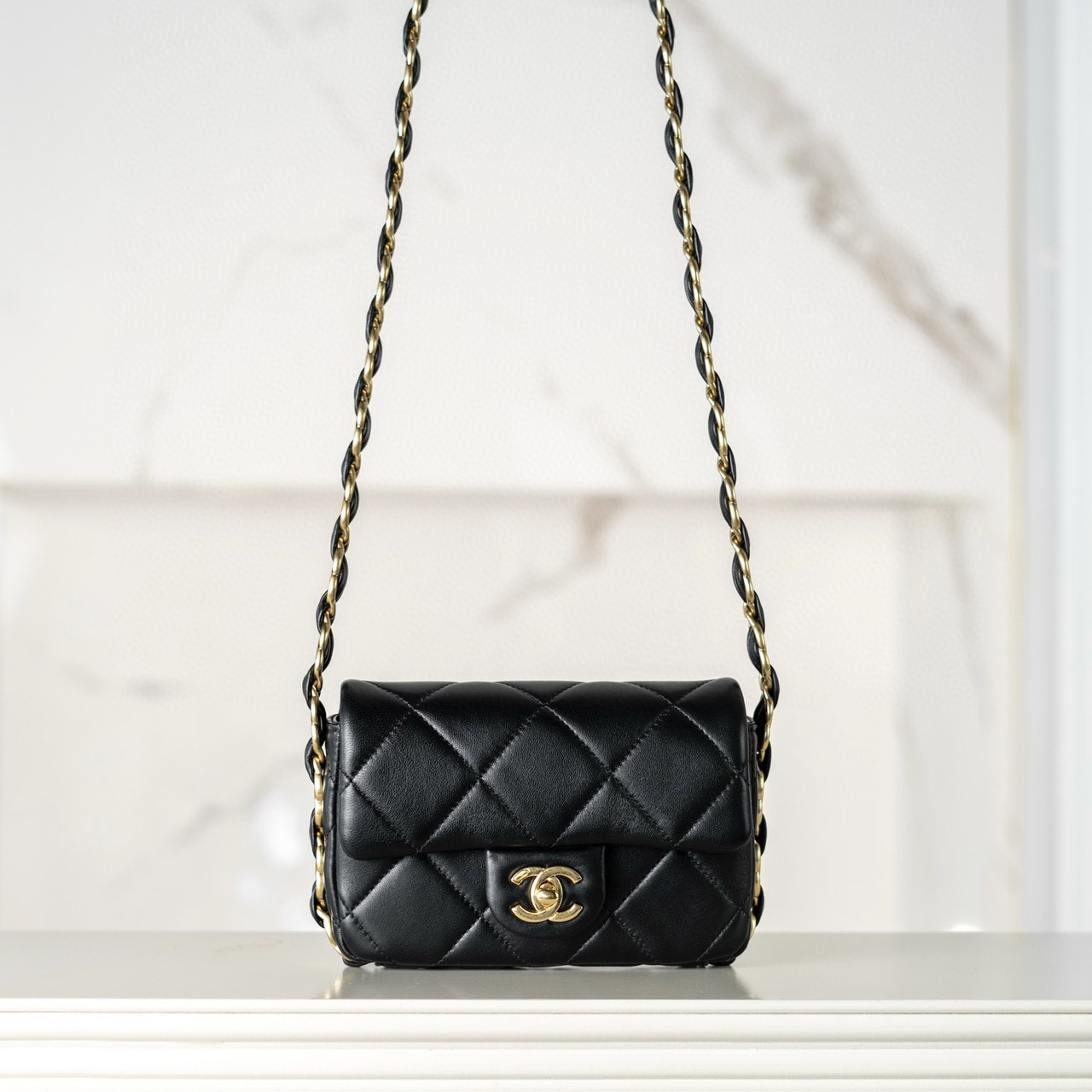 New York USA CHANEL包包專櫃價格多少錢 22 迷你手袋 亮面小牛皮 黑色