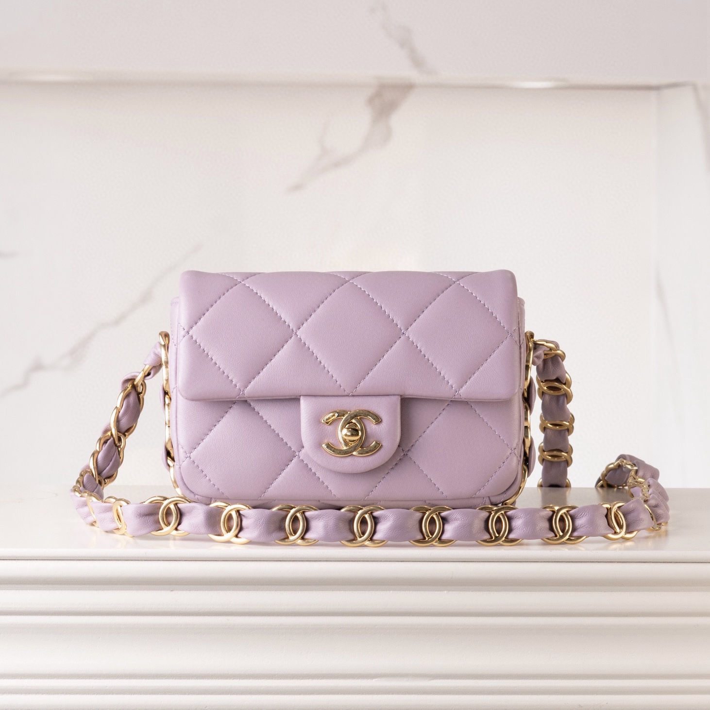 CHANEL品牌正品包包官方網站新款24k 經典粗鏈條mini口蓋包 黑金