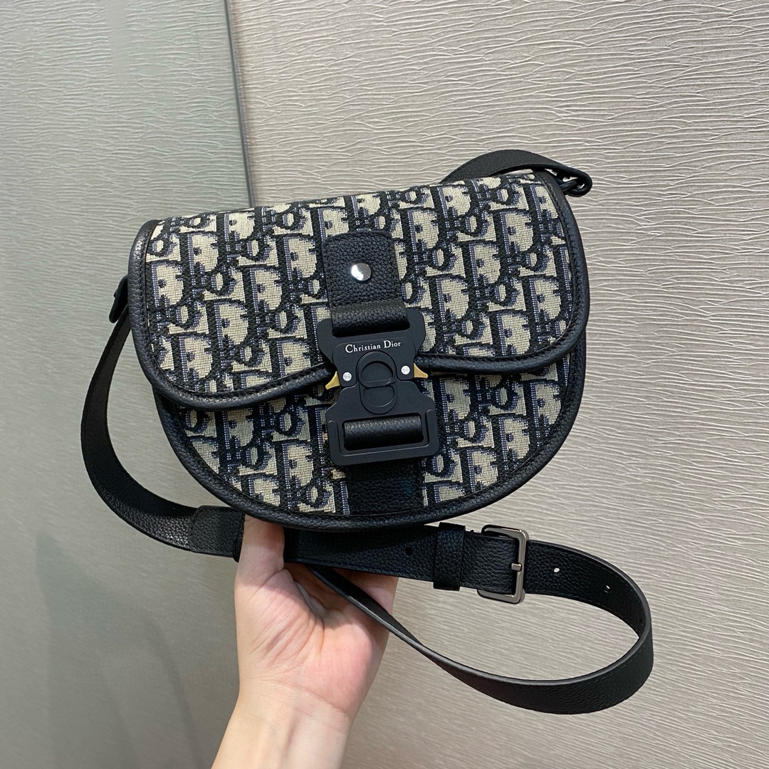 DIOR迪奧男士包Safari系列 小號信使包 米色和黑色 Oblique 印花