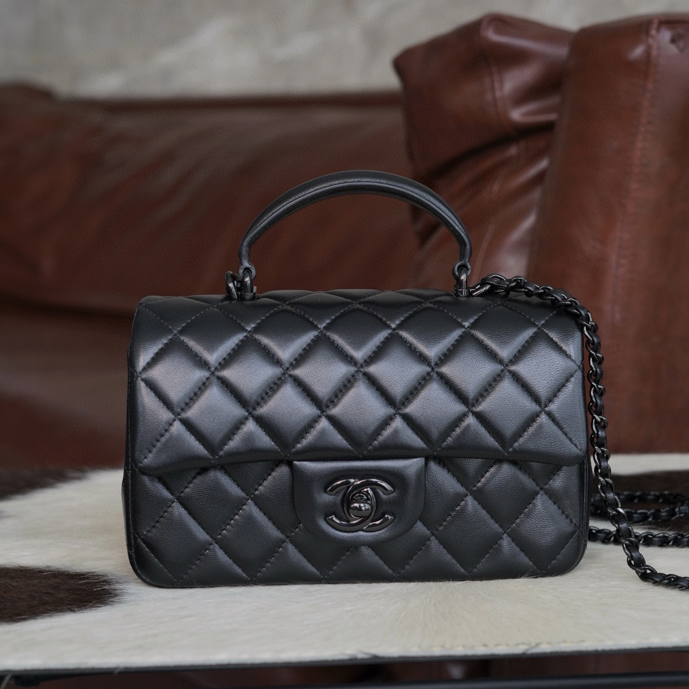 Canada香奈兒女包經典款式官網專櫃 22 手袋 黑色亮面小牛皮
