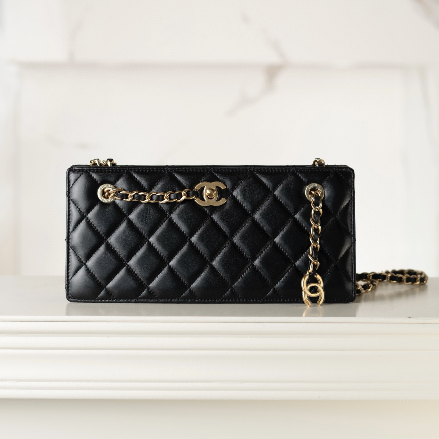 CHANEL包包 24k cf手柄包 金球 黑金小羊皮斜挎包口蓋包