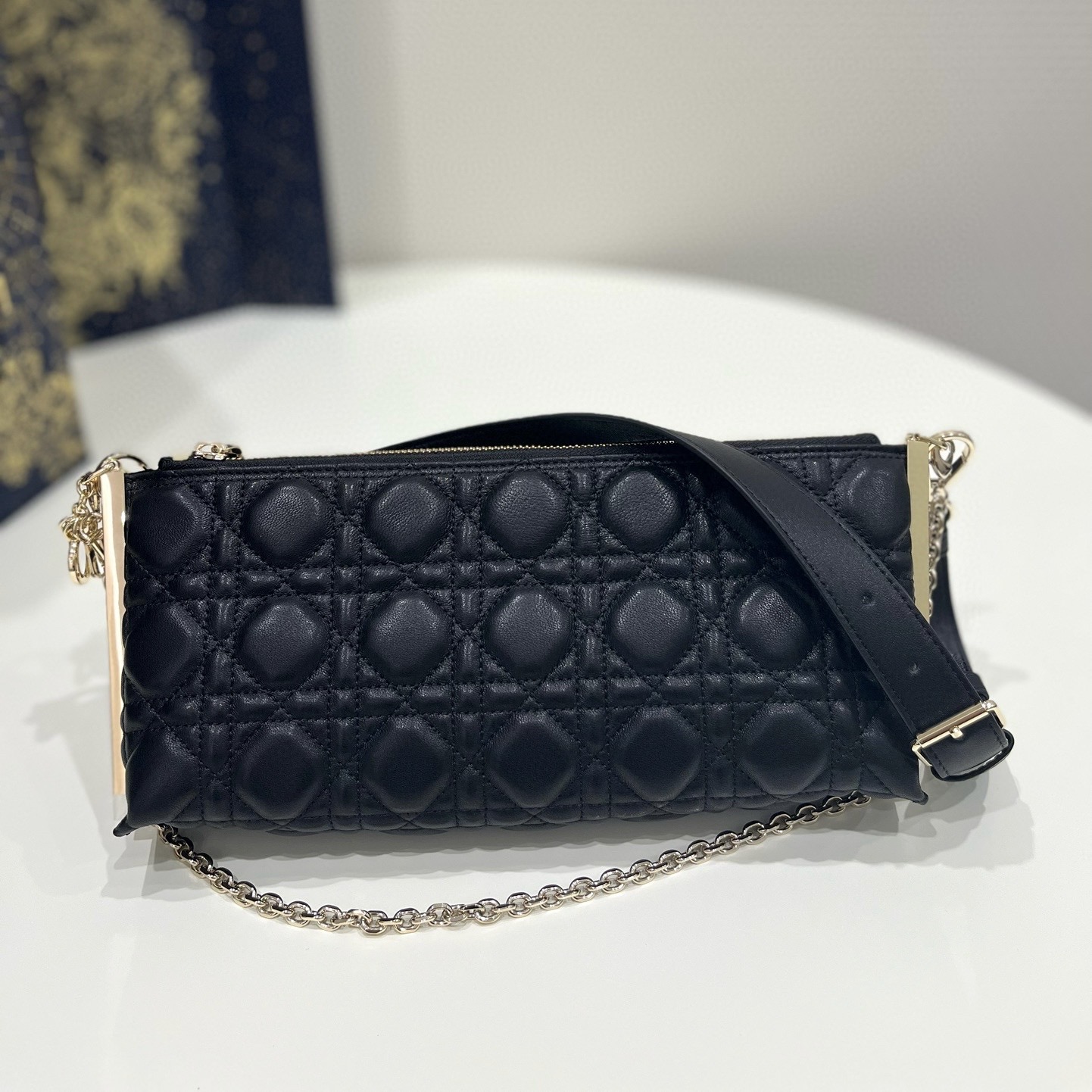 可調節、可拆卸的皮革肩帶搭配龍蝦扣保護性金屬墊腳正面金屬覆層黃銅 Dior 標誌