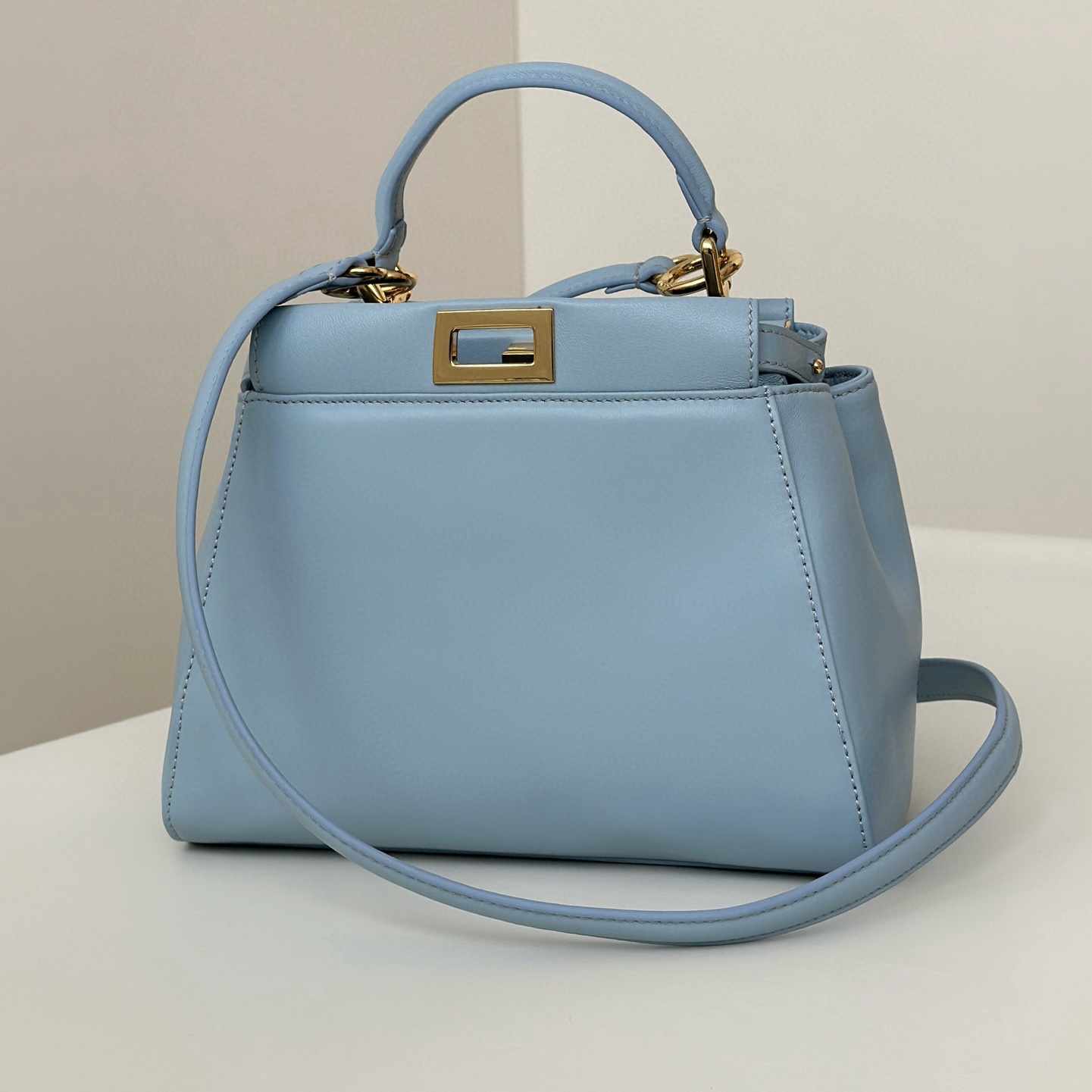 標誌性Peekaboo ISeeU小號手袋,以306針大號明線手工縫製而成,代表著源自1925年、由FENDI工匠世代傳承的Selleria經典工藝。