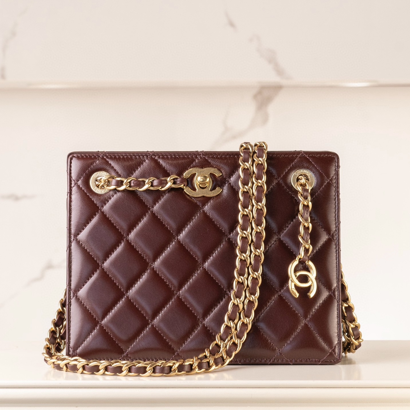 CHANEL包包官網最新款式經典棕色小牛皮 22手袋 斜挎包