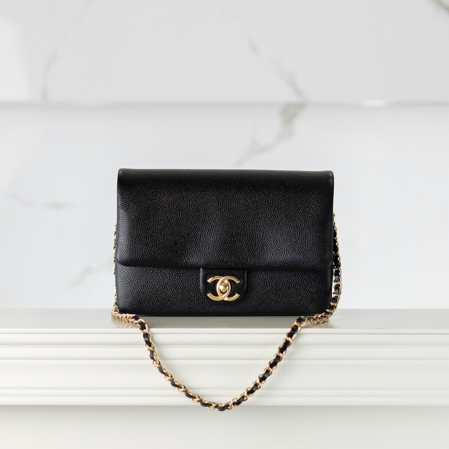 Canada香奈兒女包經典款式官網專櫃 22 手袋 黑色亮面小牛皮